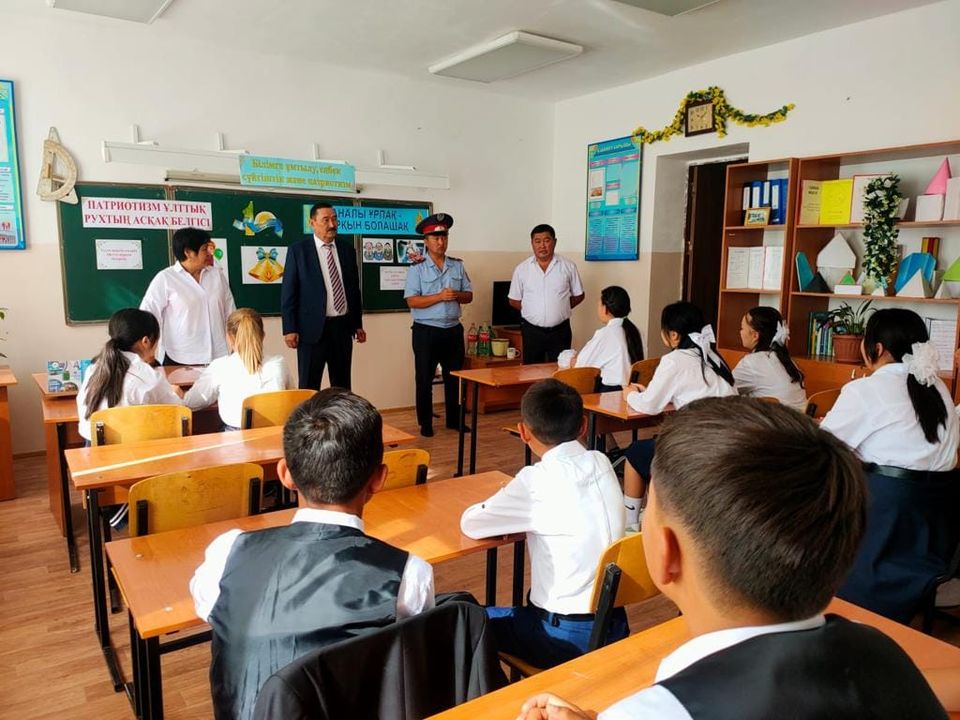 Түлкібас ауданында 1 қыркүйек “Білім күніне “ орай, Түлкібас АПБ-нің ЖПҚБ ювеналдық, патрульдік және учаскелік полиция инспекторлары, оқушыларды дәстүрлі түрде мектептерінің маңдарында қарсы алды. Тәртіп сақшылары таң сәріден жол қауіпсіздігін қамтамасыз етті. Сондай-ақ балаларға, ата-аналар мен мұғалімдерге Жол қозғалысы ережелерін сақтау бойынша үлестірмелер, брошюралар және жадынамалар таратты.