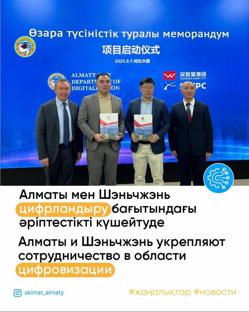 💻 Негізгі тақырып – цифрландыру және орнықты даму саласындағы ынтымақтастық. Тараптар «Алматының цифрлық егізі» пилоттық жобасын талқылап, қаланың инфрақұрылымы мен үдерістерінің динамикалық моделін құруға бағытталған тәжірибелік жұмыстарды бастады.