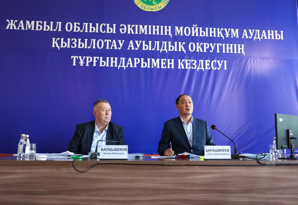 Жамбыл облысының әкімі Ербол Қарашөкеев Мойынқұм ауданына жұмыс сапары барысында Қызылтал және Қызылотау ауылдық округтерінің тұрғындарымен кездесті.
