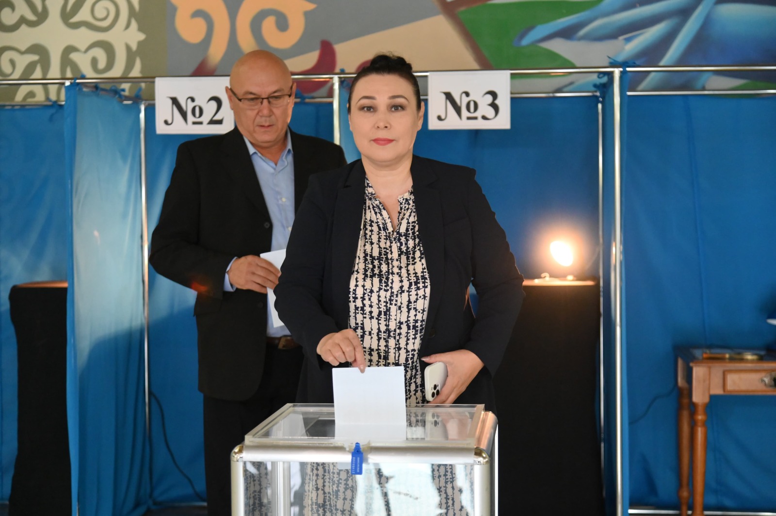 Сегодня на участке №11, который расположен в театре оперы и балета сделала свой выбор директор театра оперы и балета города Шымкента, известная оперная певица Майра Мухамедкызы.