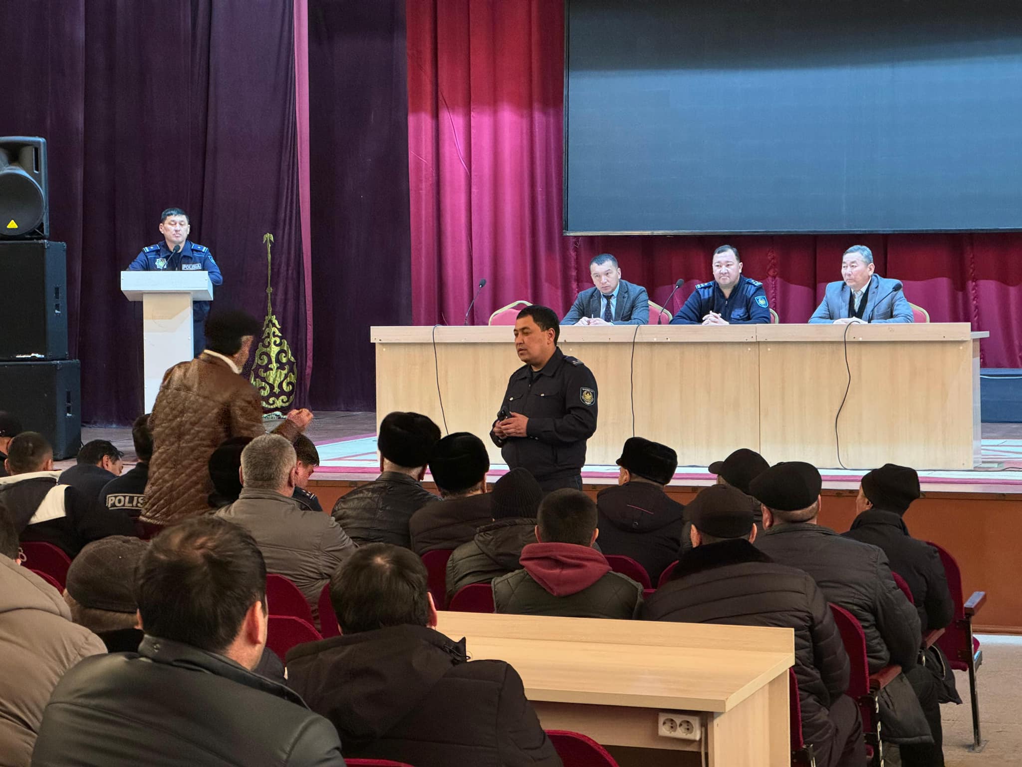 Қарабұлақ ауылдық ауылдық мәдениет үйінде Сайрам Ауданының Полиция Басқармасының №70 Қарабұлақ ауылдық полиция пунктінің учаскелік полиция инспекторлары 2024 жылы атқарған жұмыстары және алда тұрған міндеттері бойынша есептік кездесу өткізді.