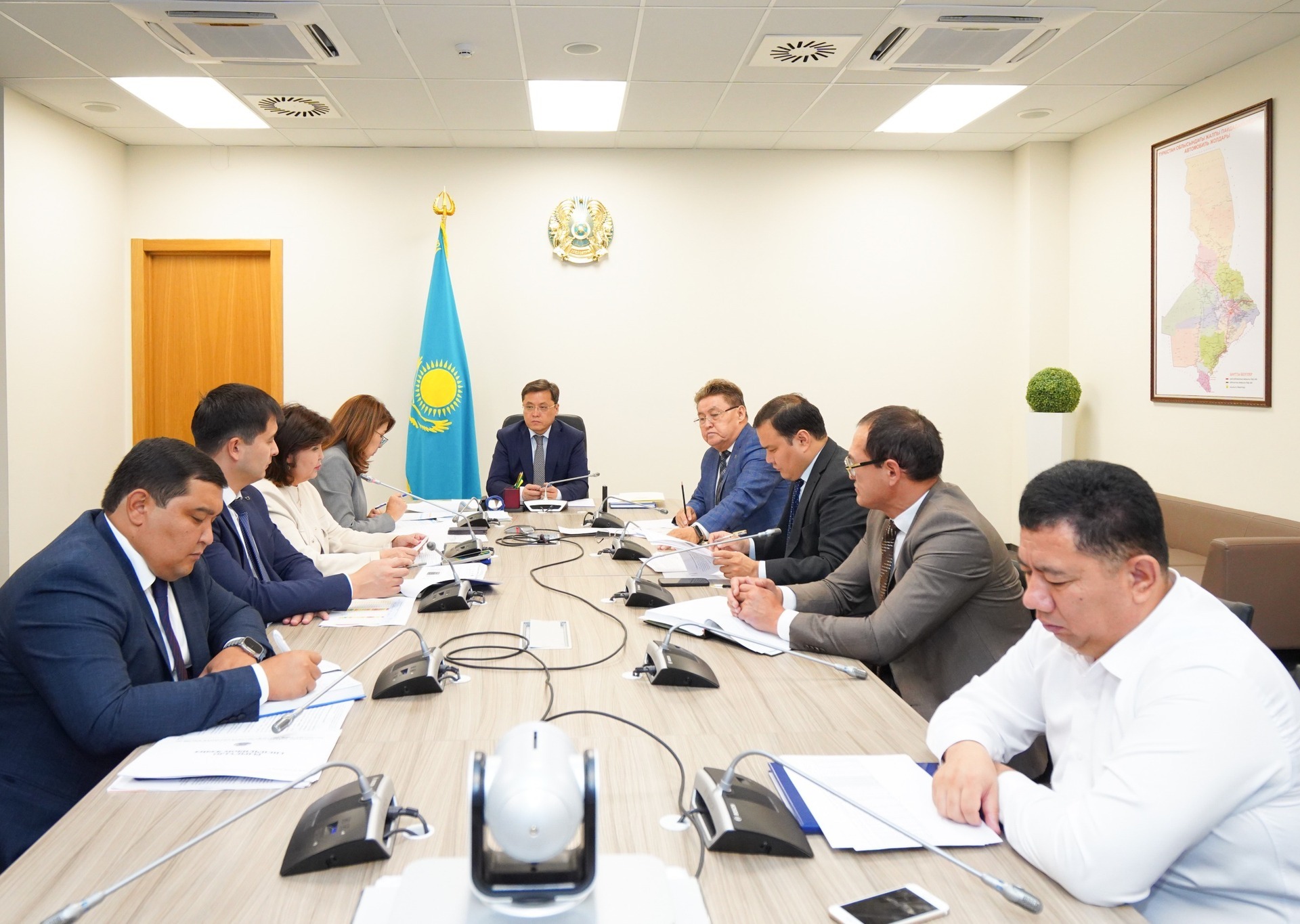 Жиында облыстық жұмыспен қамтуды үйлестіру және әлеуметтік бағдарламалар басқармасы басшысының орынбасары Күміскүл Мирова «Отбасының цифрлық картасында» Д және Е санаттағы отбасыларының санын төмендету бойынша атқарылған жұмыстар барысын баяндады. Оның айтуынша, дағдарыстық және мүшкіл санаттағы отбасылардың санын жыл соңына дейін 6,3 %-ға төмендету тапсырылған. Тапсырманы орындау мақсатында облыста бірқатар жұмыс атқарылды. Атап айтқанда, Отбасының цифрлық картасындағы деректерді өзектендіру жүргізу үшін облыс, аудан, қалалар деңгейлерінде арнайы жұмысшы топтар құрылды. Жұмыс алгоритмі бекітіліп, сол бойынша жұмыс жүргізілуде. ОЦК-дағы деректерді өзектендіру бойынша оқыту-семинарлары ұйымдастырылды. Жұмысшы топтармен ОЦК-дан алынған тізімдерге сәйкес үйме-үй аралау, әр отбасының жинақталған балы бойынша өзекті мәселерді қарау, оларды еңсеру бағытында жұмыстар жүргізіліп жатыр.