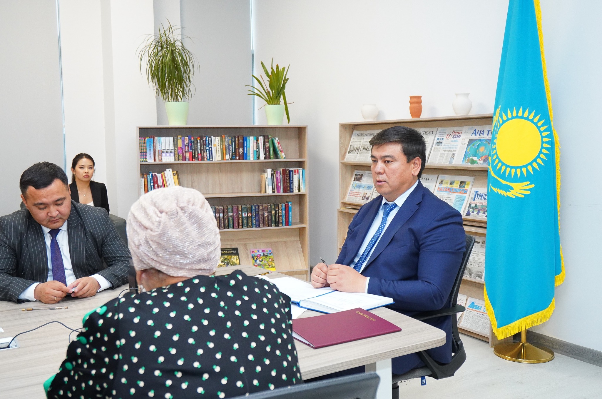 Түркістан қаласындағы «Ашық әкімдік» кеңсесінде облыс әкімі орынбасарларының тұрғындарды жеке қабылдауы кестеге сәйкес жүргізіліп жатыр. Кезекті жеке қабылдауды Түркістан облысы әкімінің бірінші орынбасары Зұлпыхар Жолдасов өткізді. Облыс тұрғындарының өтініштері мен ұсыныстарын тыңдап, сұрақтарына жауап берді.