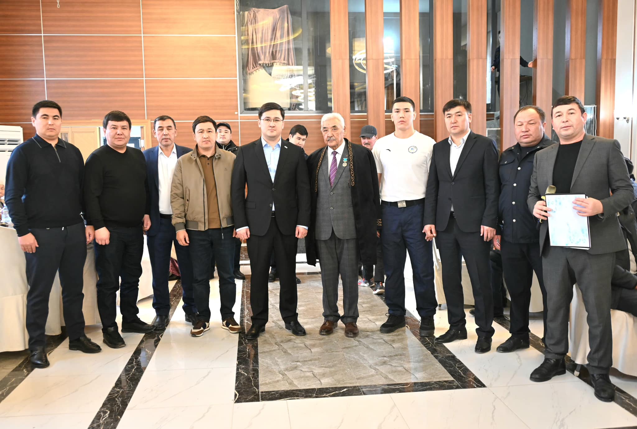 Аталған шараға Жетісай ауданының әкімі Серік Мамытов пен Түркістан облыстық мәслихатының депутаты Талғат Қаржауов, Жетісай аудандық мәслихатының төрағасы Медет Қасымов пен «AMANAT» партиясы Жетісай аудандық филиалының атқарушы хатшысы Асқар Қайназаров, чемпионның ағайын-туыстары мен ел ағалары қатысты.